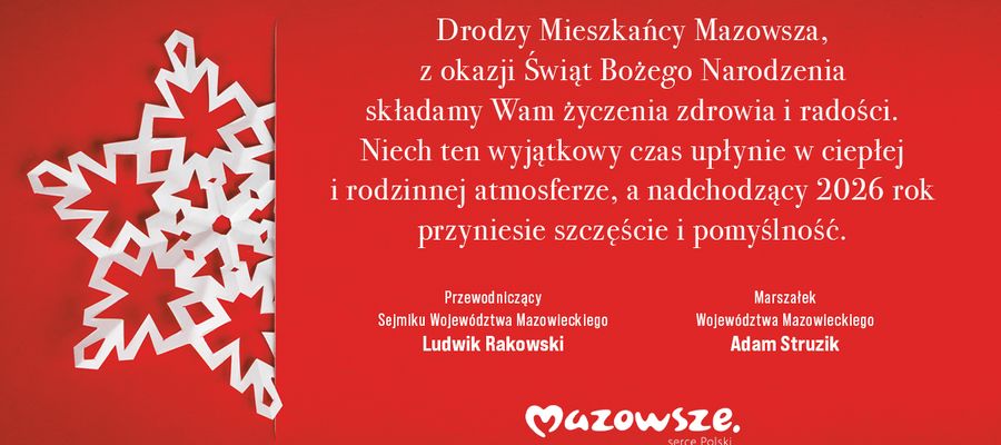 Mazowsze oferuje ciepłą, przyjazną atmosferę – z tradycjami, krajobrazami i bogactwem kultury, co sprawia, że święta Bożego Narodzenia stają się wyjątkowym przeżyciem. W tym szczególnym czasie serdecznie zapraszam do wspólnego odkrywania atrakcji regionu, których jest mnóstwo. Instytucje kultury samorządu Mazowsza przygotowały wiele ciekawych propozycji zarówno dla dzieci, dorosłych, jak i całych rodzin: koncerty, wystawy, warsztaty czy spektakle.