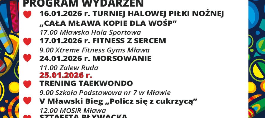34. Finał WOŚP odbędzie się 25 stycznia 2026 roku (niedziela) w Mławskiej Hali Sportowej przy Alei Piłsudskiego 33a. To wyjątkowe wydarzenie po raz kolejny stanie się imprezą ogólnomiejską, a cały dochód ze zbiórki zostanie przeznaczony na diagnozowanie, monitorowanie i leczenie chorób układu pokarmowego u dzieci. Dzięki zgromadzonym środkom Fundacja będzie mogła pomóc placówkom medycznym w całej Polsce, zapewniając jeszcze lepszą opiekę dla małych pacjentów.