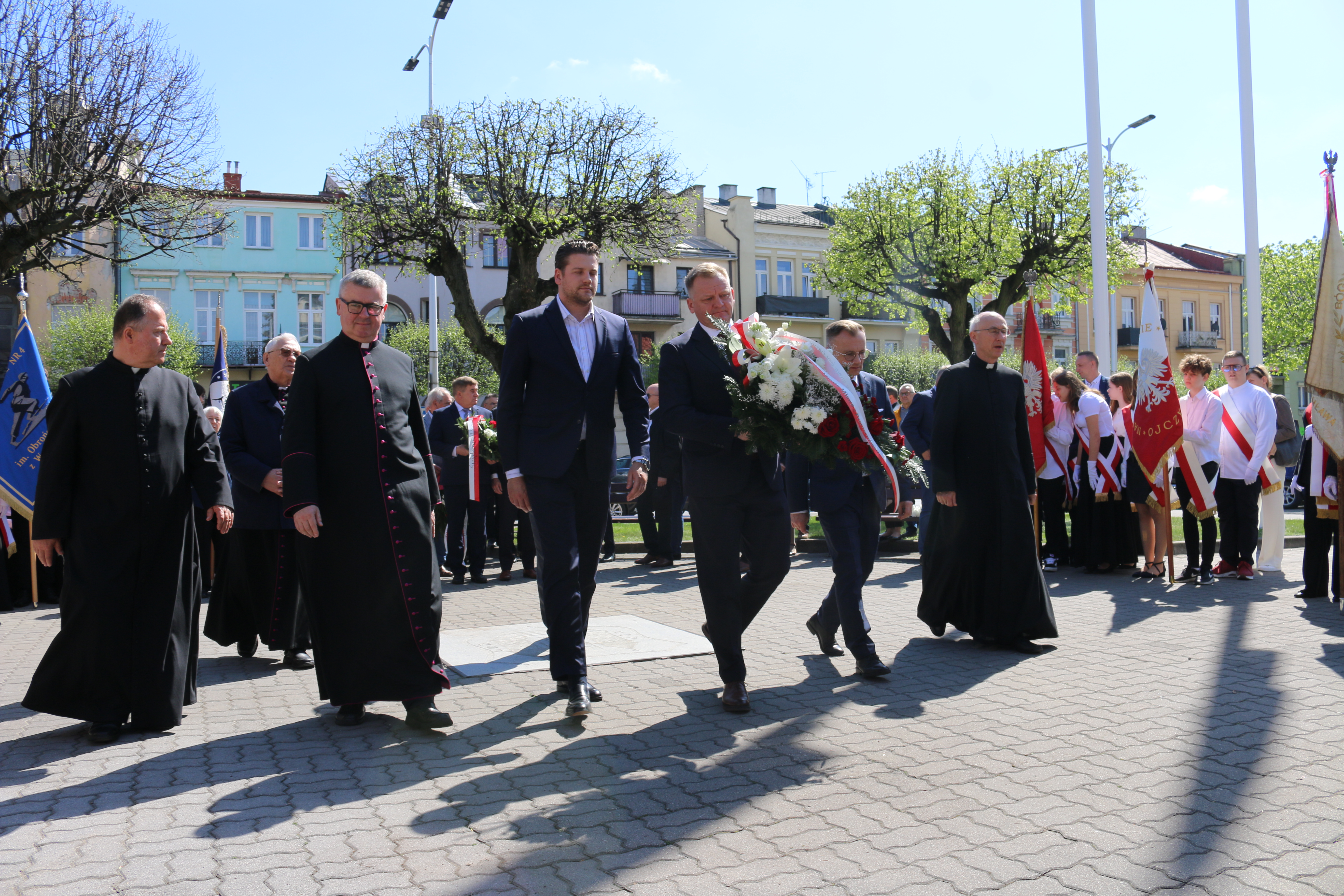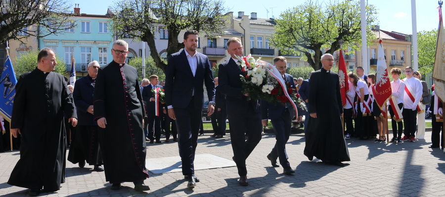 Wokół pomnika zgromadzili się mieszkańcy Mławy, w tym liczne poczty sztandarowe oraz przedstawiciele władz samorządowych.