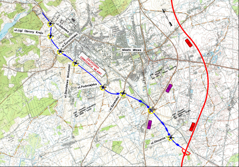 Zachodnia obwodnica Mławy powstanie w ciągu drogi wojewódzkiej nr 544 i będzie mieć 8,4 km długości. Ma przebiegać przez Mławę oraz gminy Lipowiec Kościelny i Wiśniewo. Droga ominie miasto od zachodu i na południu – u zbiegu z trasą ekspresową S7 – włączy się do węzła „Mława Południe”, a na północy – do ul. Gdyńskiej. Wzdłuż drogi powstaną chodniki, ścieżki rowerowe i drogi serwisowe. Skrzyżowania z drogami lokalnymi zostaną przebudowane, a na rzece Seracz powstanie nowy most.