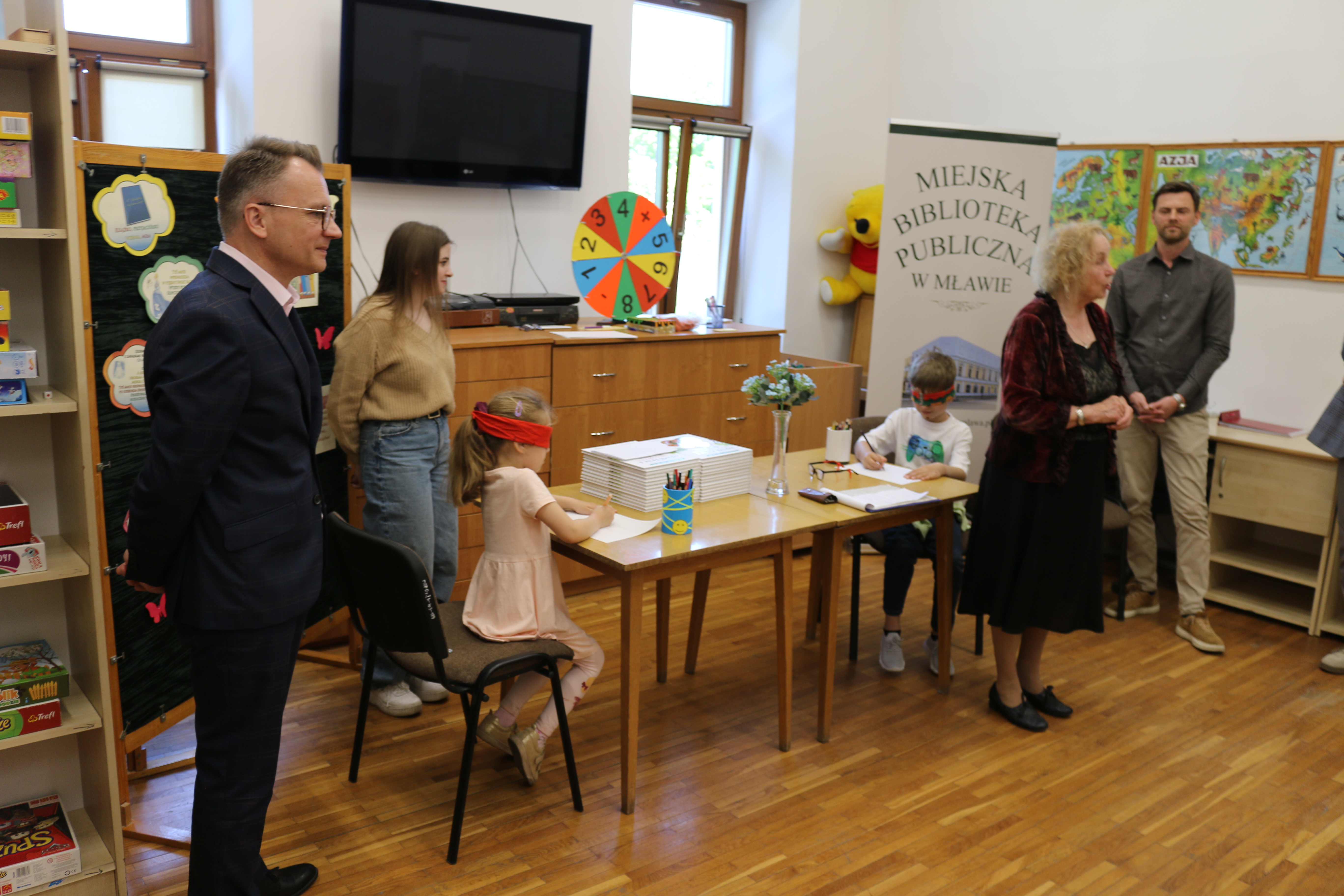 W 2025 r. w ramach akcji Miejska Biblioteka Publiczna w Mławie nawiązała współpracę z hurtownią książek Platon, która – jako mecenas kultury – od lat wspiera w różnych promujących czytelnictwo akcjach biblioteki na terenie kraju. Jej przedstawiciel – Paweł Kowalski – gościł na spotkaniu z dziećmi z zerówki Szkoły Podstawowej nr 6 w Mławie w środę 28 maja. Z młodymi czytelnikami spotkali się także tego dnia Zastępca Burmistrza Miasta Mława Marcin Burchacki oraz Naczelnik Wydziału Promocji i Współpracy Urzędu Miasta Mława Artur Ryfiński. Wraz z dyrektor biblioteki życzyli dzieciom wspaniałych przygód z książką i zachęcali do odwiedzania placówki.