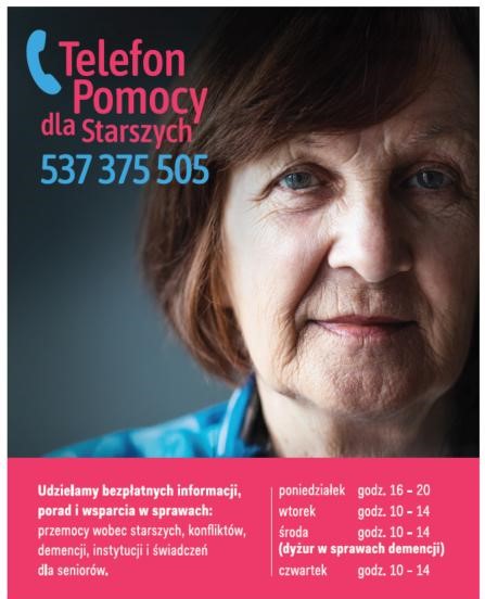Fundacja Projekt przekazuje informację o bezpłatnym Telefonie Pomocy dla Starszych - 537 375 505.