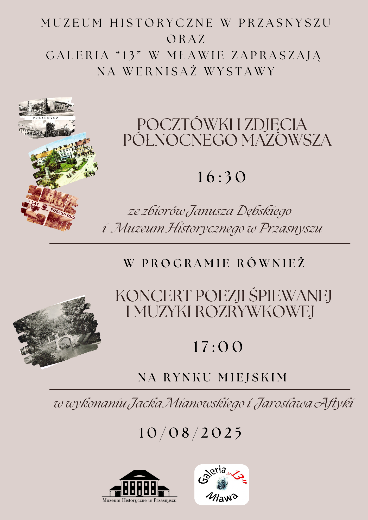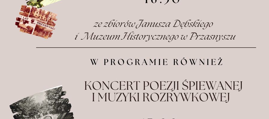 16:30 - wernisaż wystawy: "Pocztówki i zdjęcia Północnego Mazowsza" ze zbiorów Janusza Dębskiego i Muzeum Historycznego w Przasnyszu