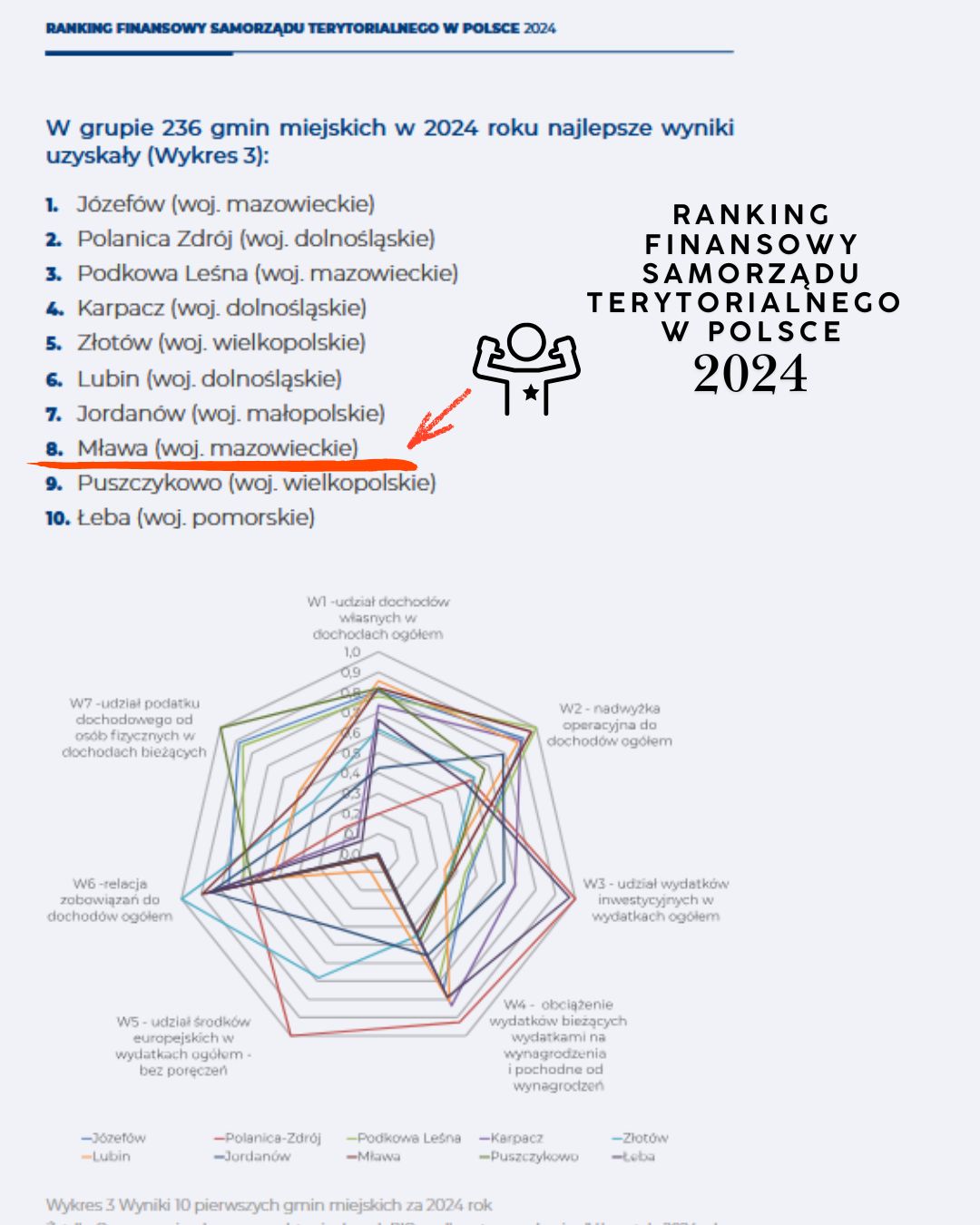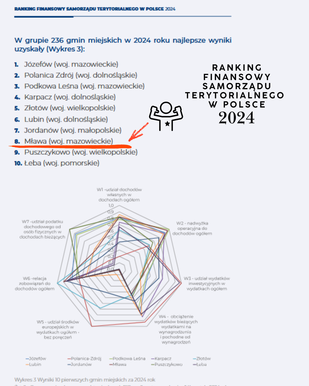 Miasto Mława zajęło 8. miejsce wśród 236 gmin miejskich w Polsce w „Rankingu Finansowym Samorządu Terytorialnego 2024”.
