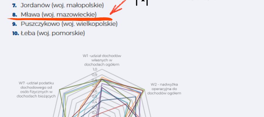 Dzięki tym wskaźnikom – patrząc kompleksowo – można zobaczyć, że Mława nie tylko ma silne dochody własne, ale także dobrze inwestuje, nie obarcza budżetu nadmiernie kosztami stałymi, korzysta z funduszy europejskich i utrzymuje bezpieczny poziom zadłużenia. To wszystko składa się na to, że miasto uplasowało się na 8. miejscu spośród 236 gmin miejskich, potwierdzając, że Mława należy do ścisłej czołówki najlepiej zarządzanych finansowo samorządów w kraju. To ogromny sukces i dowód na stabilną, odpowiedzialną politykę finansową władz samorządowych.