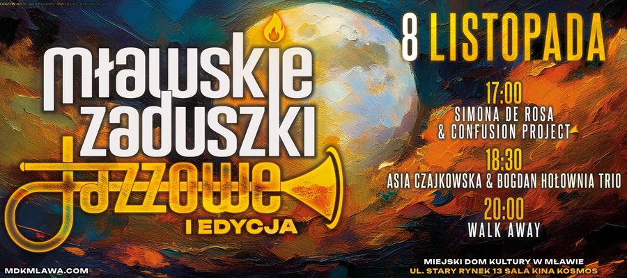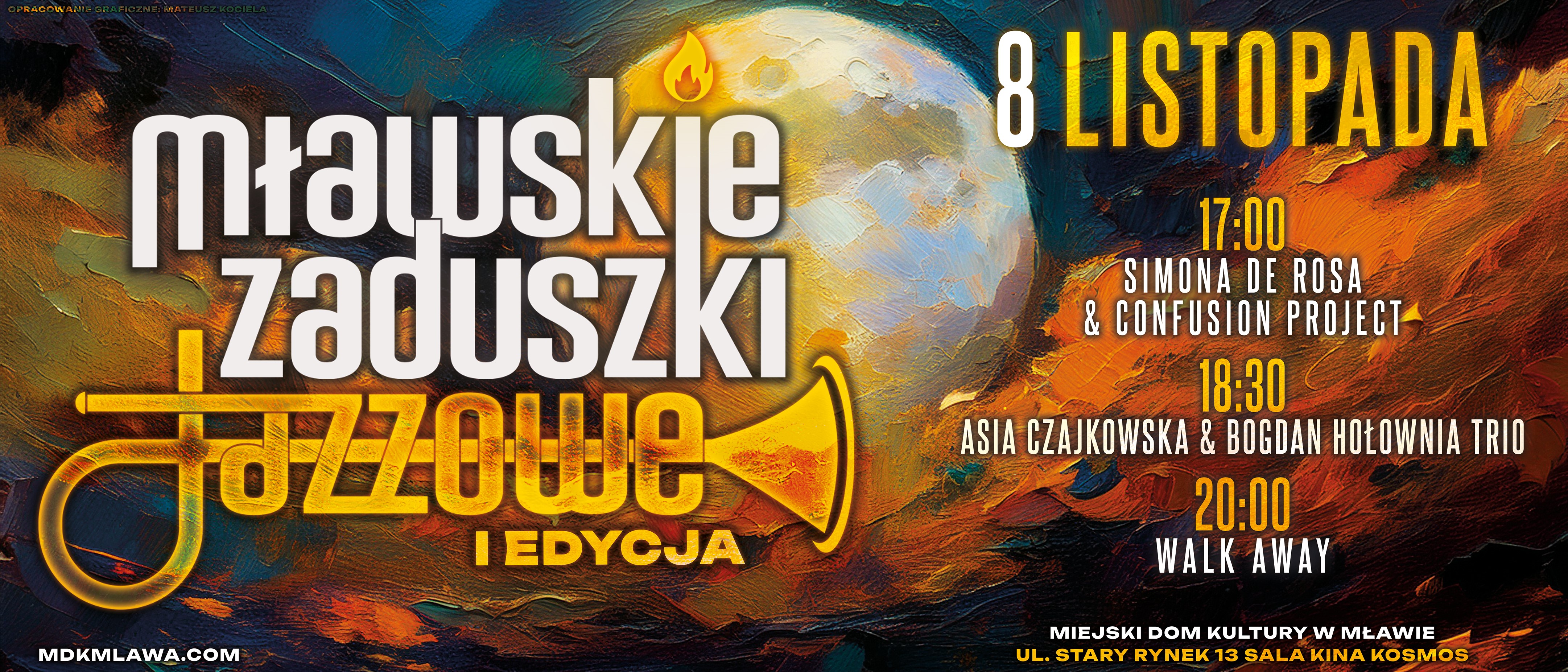 Już 8 listopada 2025 roku w sali Kina Kosmos w Mławie po raz pierwszy odbędą się Mławskie Zaduszki Jazzowe. Organizatorzy przygotowali wieczór pełen dźwięków jazzu w najlepszym wydaniu – od klasyki, przez nastrojowe interpretacje, aż po energiczne i nowoczesne brzmienia.