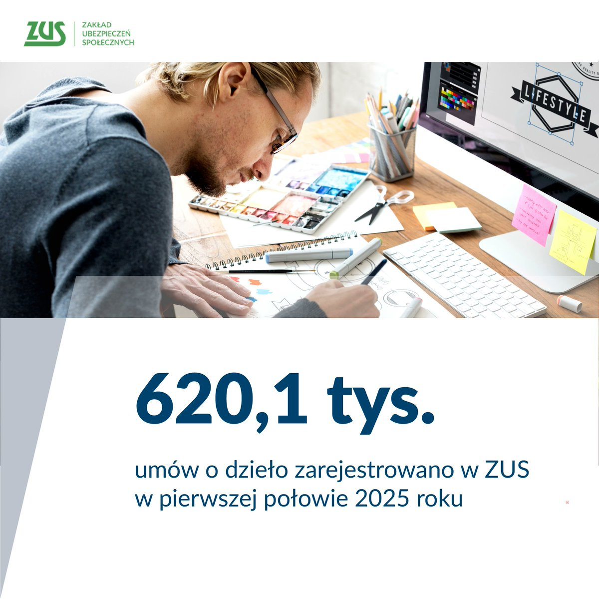 Od 1 stycznia do 30 czerwca 2025 r. do ZUS wpłynęło 519,1 tys. formularzy RUD, na których zgłoszono ponad 620,1 tys. umów o dzieło. Za tymi liczbami stoi 47 tys. podmiotów, które zgłosiły umowy zawarte z 204 tys. wykonawców. Choć liczby te są nieco niższe niż w analogicznym okresie 2024 r. (formularze – spadek o 4,35 proc.; umowy – spadek o 10,08 proc.), rejestr wciąż potwierdza, że umowy o dzieło pozostają istotnym narzędziem uelastyczniającym rynek pracy.
