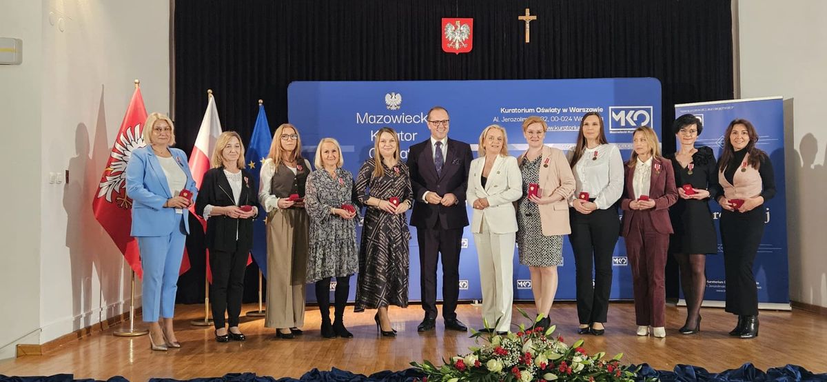 Podczas wydarzenia Mazowiecka Kurator Oświaty, Wioletta Krzyżanowska, uhonorowała nauczycieli i pracowników oświaty, wręczając Medale Komisji Edukacji Narodowej - jedno z najwyższych odznaczeń nadawanych przez Ministra Edukacji za szczególne zasługi dla rozwoju edukacji oraz wychowania młodego pokolenia.