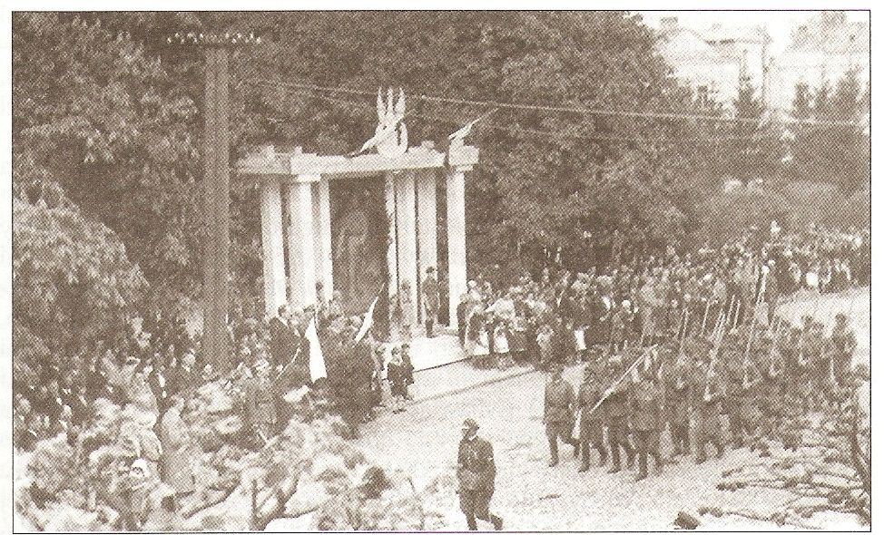 Uroczystości przy portrecie Józefa Piłsudskiego lata 30