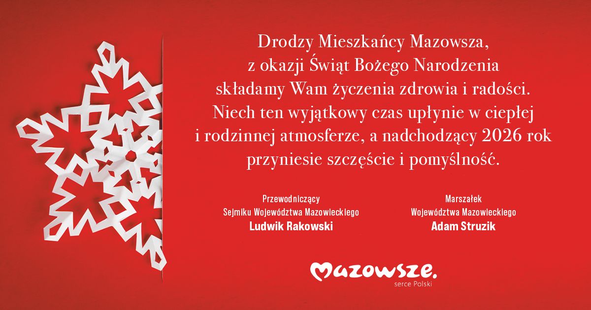 Mazowsze oferuje ciepłą, przyjazną atmosferę – z tradycjami, krajobrazami i bogactwem kultury, co sprawia, że święta Bożego Narodzenia stają się wyjątkowym przeżyciem. W tym szczególnym czasie serdecznie zapraszam do wspólnego odkrywania atrakcji regionu, których jest mnóstwo. Instytucje kultury samorządu Mazowsza przygotowały wiele ciekawych propozycji zarówno dla dzieci, dorosłych, jak i całych rodzin: koncerty, wystawy, warsztaty czy spektakle.