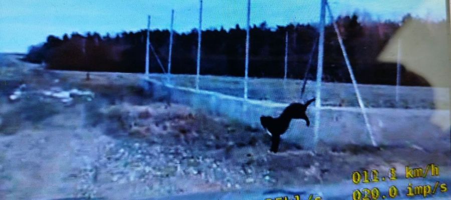 Policjanci z Wydziału Ruchu Drogowego Komendy Powiatowej Policji w Mławie otrzymali zgłoszenie o psie uwięzionym w siatce ogrodzeniowej w pobliżu trasy S7. Zwierzę tylną łapę zaplątaną miało w siatkę i, jak wynikało ze śladów, znajdowało się tam od dłuższego czasu. Ziemia wokół była wyraźnie poruszona, co wskazywało na próby oswobodzenia się.