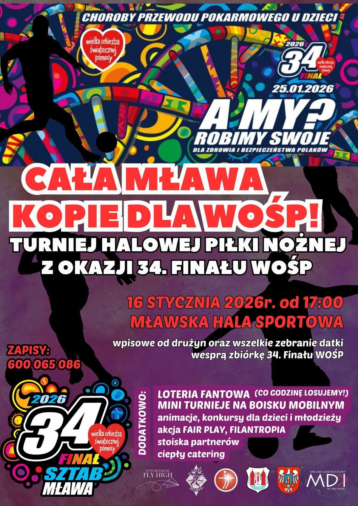 Wpisowe oraz wszelkie dodatkowe datki zebrane podczas turnieju trafiają na konto zbiórki 34. finału WOŚP w Mławie!