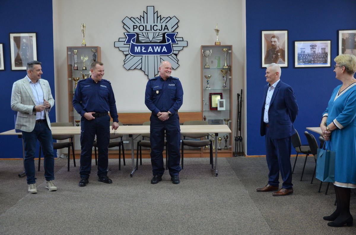 Podczas uroczystego pożegnania podziękowania za wieloletnią służbę i zaangażowanie złożyli Komendant Powiatowy Policji w Mławie mł. insp. Marcin Ostrowski, Zastępca Komendanta Powiatowego nadkom. Robert Górczyński, a także Komendant w stanie spoczynku insp. Tomasz Łysiak. W spotkaniu uczestniczyli również policjanci oraz pracownicy cywilni komendy, którzy wspólnie wyrazili wdzięczność za lata współpracy.
