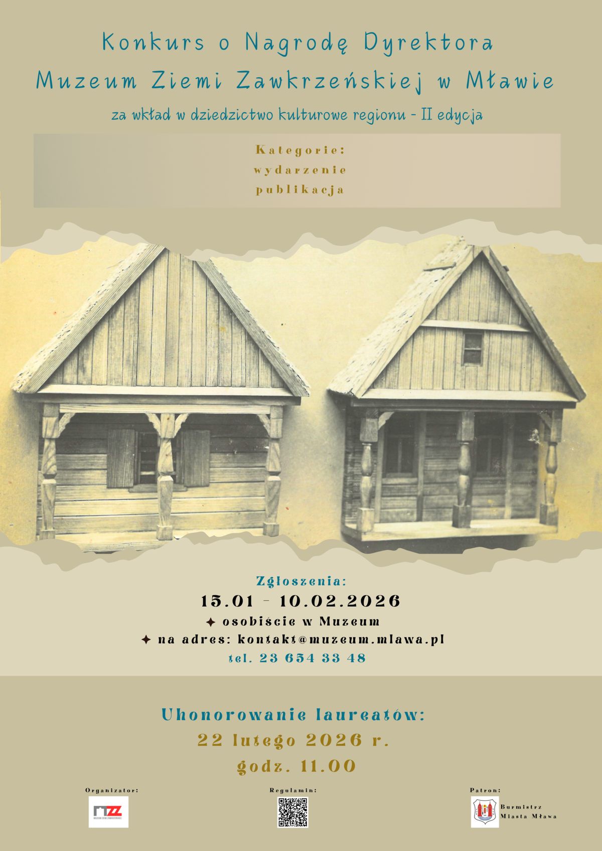 Ogłoszenie wyników oraz wręczenie nagród odbędzie się 22 lutego 2026 roku o godz. 11.00 podczas uroczystego spotkania w Muzeum Ziemi Zawkrzeńskiej w Mławie.