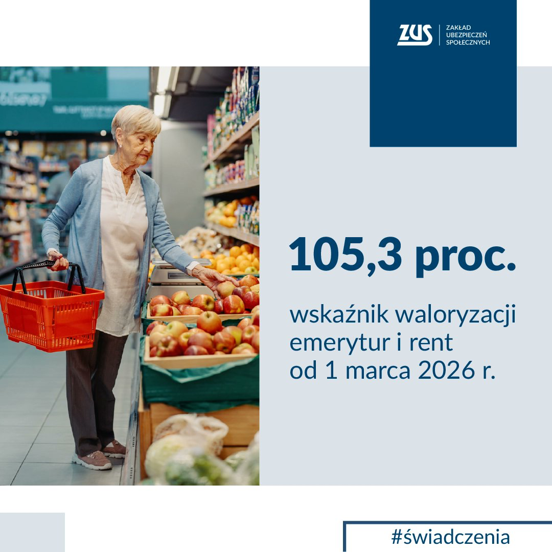 Od 1 marca świadczenia emerytalno-rentowe i dodatki, które wypłaca Zakład Ubezpieczeń Społecznych, wzrosną z powodu waloryzacji. Nie trzeba składać w tej sprawie wniosku, podwyżka odbędzie się z urzędu. Świadczenia wzrosną o 5,3 procent.