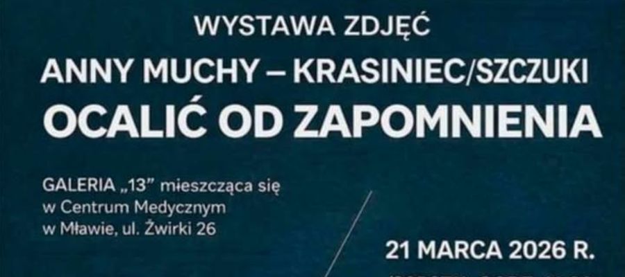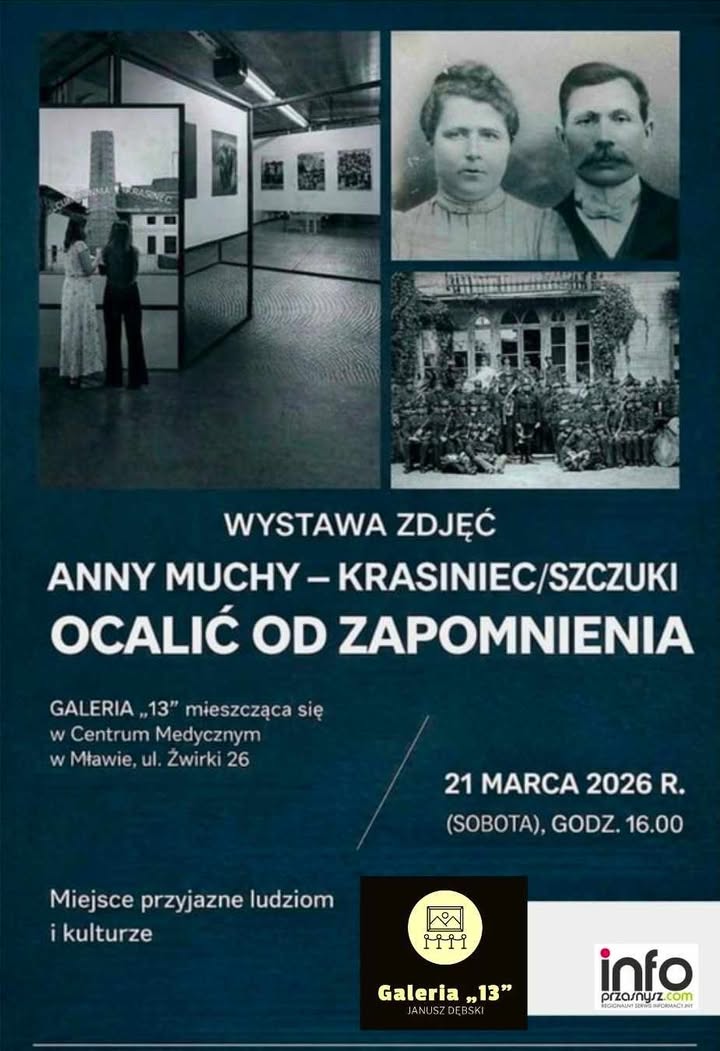 Już w sobotę 21 marca o godzinie 16.00 w Galerii 13, mieszczącej się w Centrum Medycznym w Mławie, ulica Żwirki 26 odbędzie się wystawa zdjęć Anny Muchy-Krasiniec/Szczuki "Ocalić od zapomnienia".