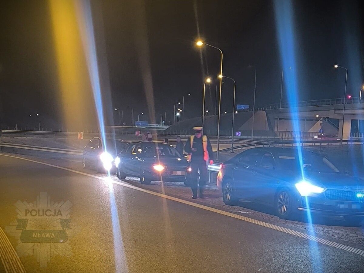 Policjanci Wydziału Ruchu Drogowego Komendy Powiatowej Policji w Mławie, podczas patrolu drogi ekspresowej S7, zatrzymali dwóch kierujących, którzy urządzili sobie nielegalny wyścig. Mężczyźni, jadąc Audi i Skodą, zajmowali oba pasy ruchu, wzajemnie się ścigając i przekraczając dopuszczalną prędkość o 80 km/h.