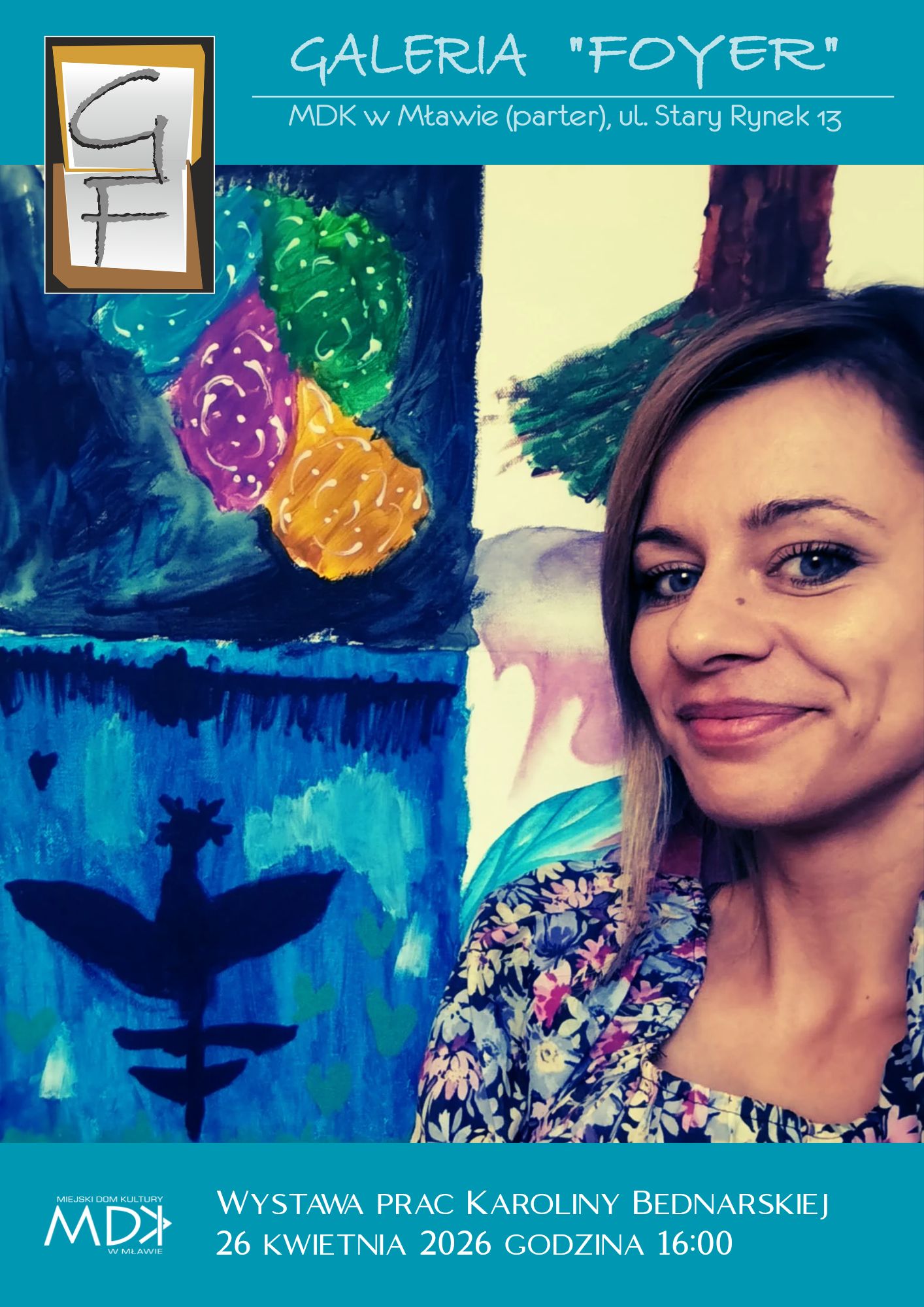 W niedzielę, 26 kwietnia 2026 roku o godz. 16.00 w Galerii Foyer odbędzie się otwarcie wystawy prac Karoliny Bednarskiej. Obrazy mławianki będzie można oglądać aż do 13 maja. Wstęp na wydarzenie jest wolny.