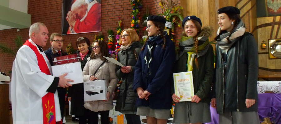 III miejsce - Jan Gołębiewski, Bartosz Szempliński, siostra Andrzeja - Lucyna Wyszkowska ze Zgromadzenia Sióstr Misjonarek Świętej Rodziny w Mławie
