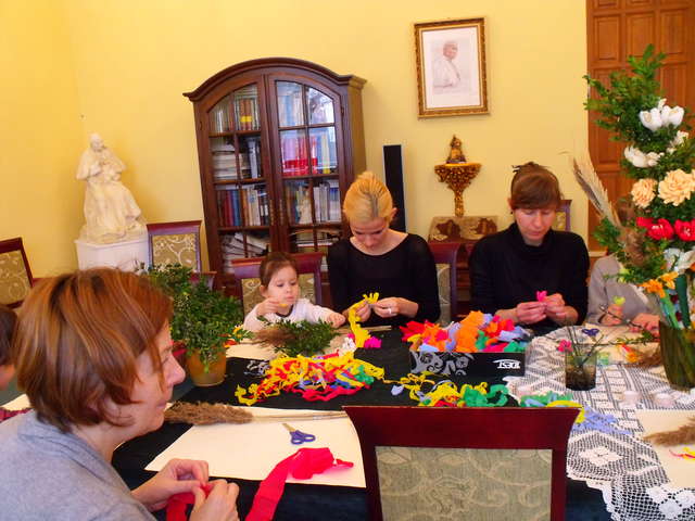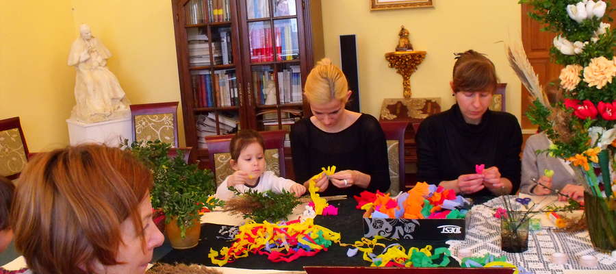 Wskazówek udzielała Katarzyna Skorupa – Malińska z muzeum. Opiekunowie i dzieci z zapałem tworzyli rękodzieła. Mławianka Małgorzata Jakubowska z córką Natalką, w zajęciach uczestniczyły po raz drugi. - Staramy się korzystać z zajęć. Spodobało nam się w ubiegłym roku i teraz też chciałyśmy przyjść. Dzięki temu mamy trochę więcej świątecznych przyjemności. Dopiero się uczymy. W ubiegłym roku panie sporo nam pomagały, wykonały kwiaty. W tym roku trzeba więcej pracować samodzielnie. Mamy nadzieję, że się uda – usłyszeliśmy od pani Małgorzaty. Jak pozostali uczestnicy ma frajdę z samodzielnego tworzenia palmy. Ceni sobie też możliwość konstruktywnego spędzenia czasu z córką. Święta planuje spędzić rodzinnie. - Podczas świąt staramy się kultywować tradycje. Natalka nie może doczekać się kolorowania jajek. Zwykle ozdabiamy jajka za pomocą gotowych barwników, buraczków lub w cebulaku. Z gotowym koszyczkiem pójdziemy do kościoła. A przy świątecznym śniadaniu zasiądzie cała rodzina. Podzielimy się święconką. Skosztujemy tradycyjnych potraw. Na stole będzie m.in. biała kiełbaska i jajka pod różnymi postaciami. Będzie to czas na potrzymanie relacji z rodziną – opowiada mławianka. Uczestnicy warsztatów złożyli świąteczne życzenia redakcji i czytelnikom.