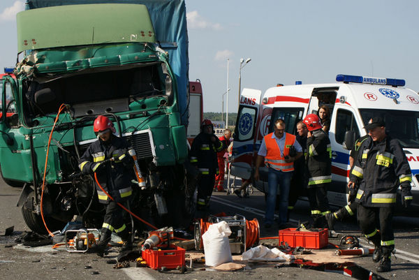 Na siódemce w okolicach Mławy ciężarowy man uderzył w tył tira