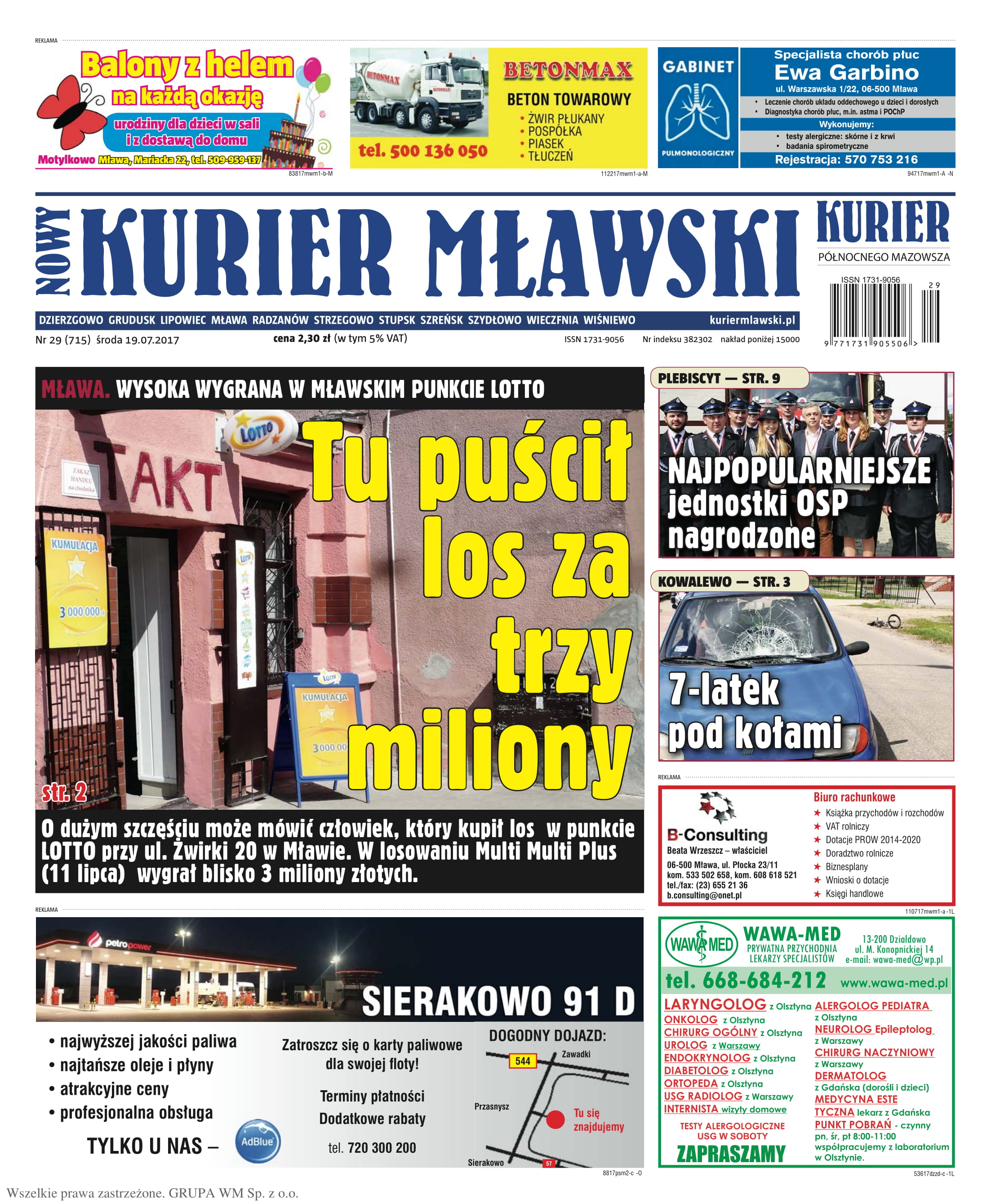 Rok 2017 - Tu puścił los za trzy miliony: W 2017 r. głośno było o wysokiej wygranej w naszym mieście. O dużym szczęściu mógł mówić człowiek, który kupił los w punkcie LOTTO przy ul. Żwirki 20 w Mławie. 11 lipca w losowaniu Multi Multi Plus wygrał blisko 3 miliony złotych.